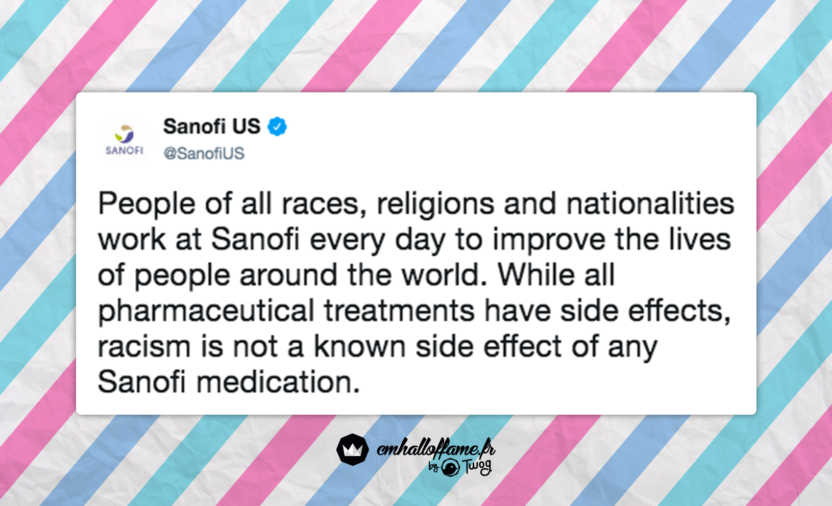 Des personnes de toutes races, religions et nationalités travaillent chaque jour chez Sanofi pour améliorer la vie des gens du monde entier. Alors que tous les traitements pharmaceutiques ont des effets secondaires, le racisme n’est pas un effet secondaire connu des médicaments de Sanofi.