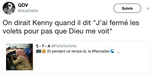 #Internet Le dailymotioner Kenny est, comme depuis le premier jour, au top de son #Ramadan qu'il fait avec zèle et sérieux. pic.twitter.com/yyeQAHqr4E
