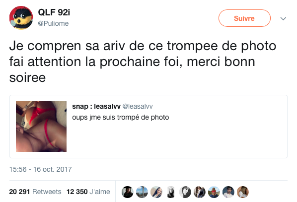 ☐ vas-y fais pas ta star là !! Salope va !— Jean-Moundir (@supermegadrivin) October 18, 2017