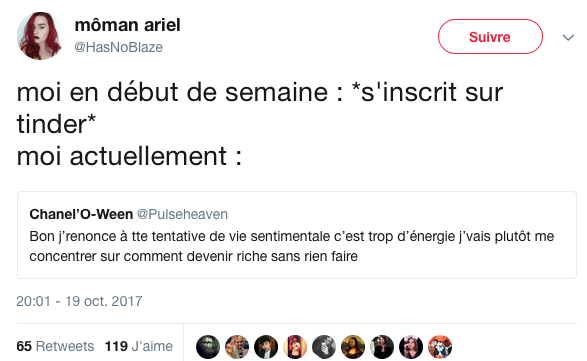 -Bienvenue chez tinder pic.twitter.com/7acLrmC0GK— Mylan (@Avidozaur) October 9, 2017