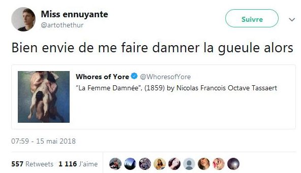 J’ai jamais réalisé qu’à chaque fois que j’ai eu des relations sexuelles avec un homme, je l’ai empêché de tuer des gens en masse, je suis un putain d’Avenger.