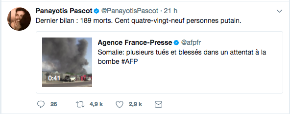 🔴Camion piégé: le bilan s’alourdit encore à Mogadiscio: au moins 276 morts. Les autorités ont décrété 3 jrs de deuil national. (AP) #Somalie
