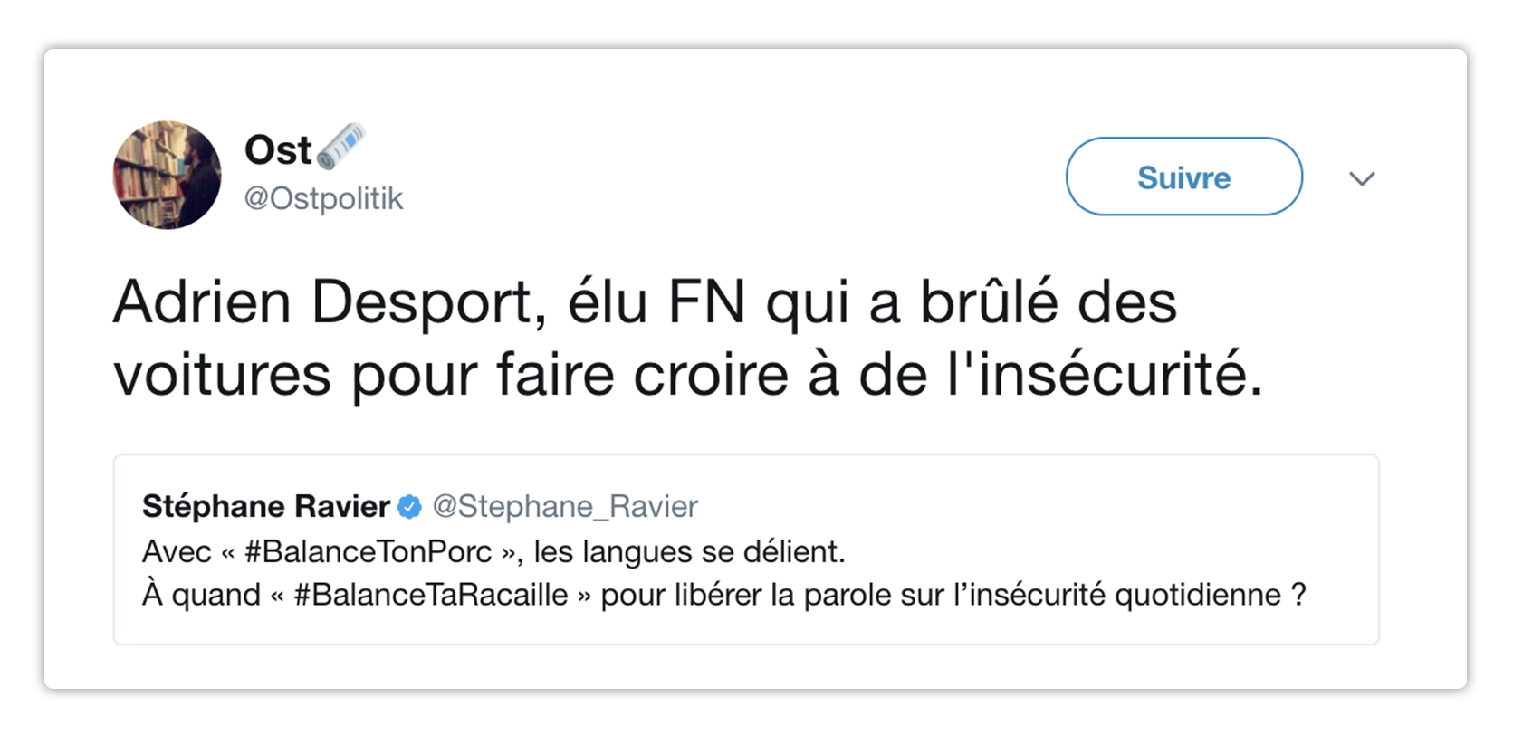 ☐ vas-y fais pas ta star là !! Salope va !— Jean-Moundir (@supermegadrivin) October 18, 2017