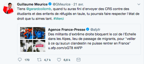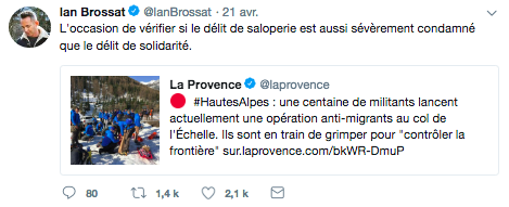 Les mecs de #StopMigrantsAlpes, ils ont mis une bannière par terre ils te disent qu'une frontière est fermée.