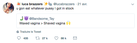 @lucabrazzers : “Tu boufferas la chatte que j’ai en stock.”