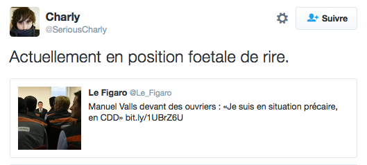 – Vous emmerdez pas, on doit pas en être loin de toute façon.— Peter Panne (@johannarbeburu) March 22, 2016