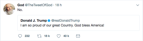 – Je suis tellement fier de notre grand pays. Dieu bénisse l’Amérique !