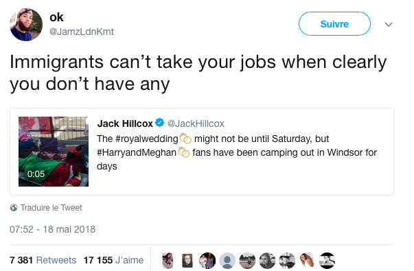 Réponse : Les immigrants peuvent prendre vos jobs vu que clairement vous n’en avez pas
