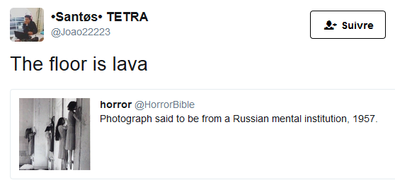 “The floor is lava (le sol est en lave)”. Si quelqu’un crie cette phrase, il faut vous mettre en hauteur le plus vite possible, où que vous soyez (pour éviter la lave CQFD). Ce qui entraîne des situations assez drôles. Sélection des meilleurs tweets ce sujet par Twog.