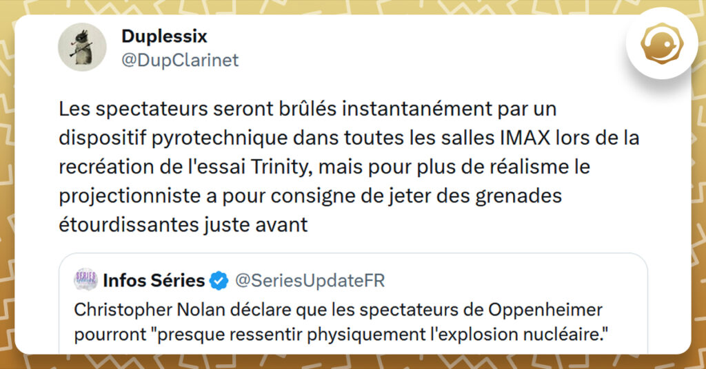 moi demain qui enchaine l’avant première de Barbie et celle d’Oppenheimer https://t.co/1LjOPX57gD