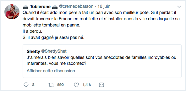Tout commence par ce tweet de @ShettyShet, c’est parti pour des histoires de famille, vieilles ou récentes, héroïques ou carrément bizarres :